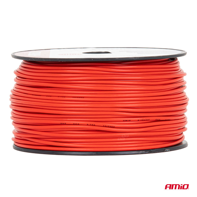 Viengyslis raudonas kabelis CCA 1x0,75mm2 100m 3,75A 12/230V AMIO-04450