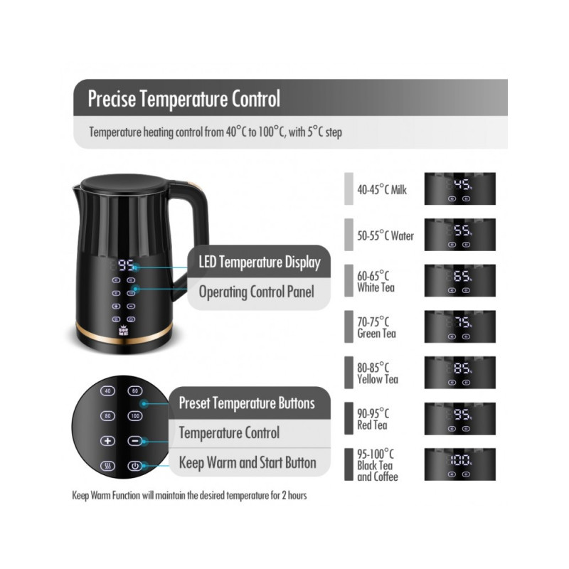 Temperatūros pasirinkimas 40–100 °C diapazone, 5 °C žingsniais