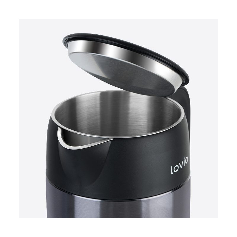 Saugumas: automatinis išsijungimas nuėmus nuo pagrindo, karščiui atsparios rankenos, apsauga nuo perkaitimo, apsauga nuo įjungimo, kai indas tuščias