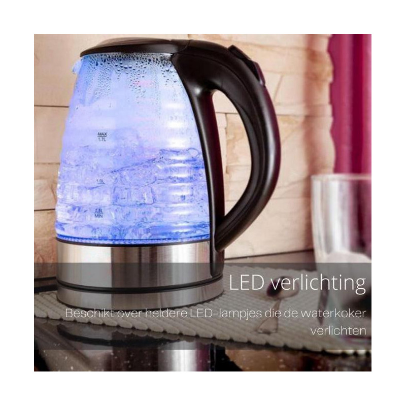 Šis „Michelino“ virdulys pagamintas iš saugaus stiklo ir nerūdijančio plieno. Jo talpa – 1,7 litro, o ryškiai mėlynas LED apšvietimas gražiai apšviečia virdulį. Jis taip pat turi 2200 W galią ir 360 laipsnių kampu besisukantį pagrindą. Kad virdulys būtų kuo švaresnis, snapelyje įmontuotas nuimamas ir plaunamas filtras.