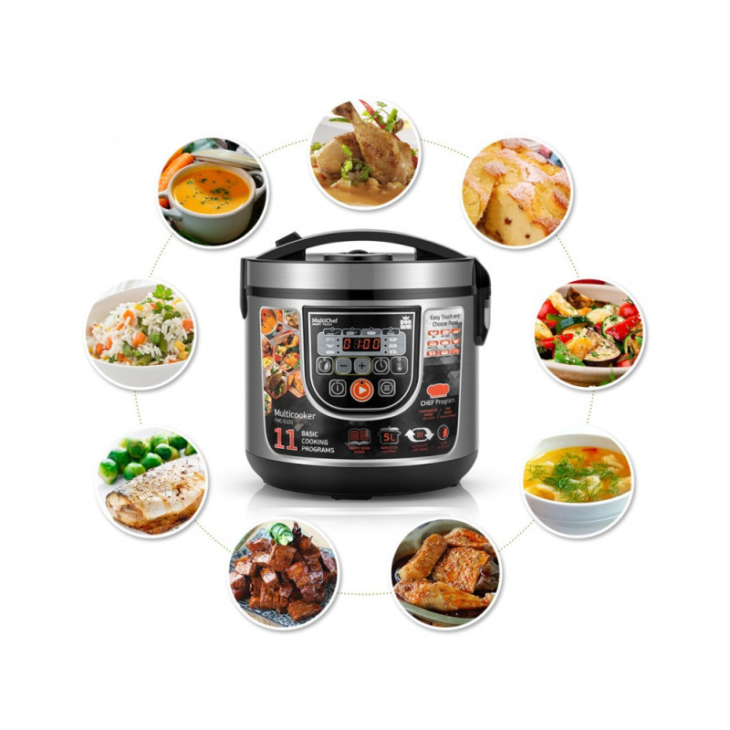 11 programų: kepimas keptuvėje, ryžių virimas, virėjo kepimas, rizotas, garinimas, kepimas orkaitėje, troškinys, sriuba, avižiniai dribsniai, jogurtas, pašildymas