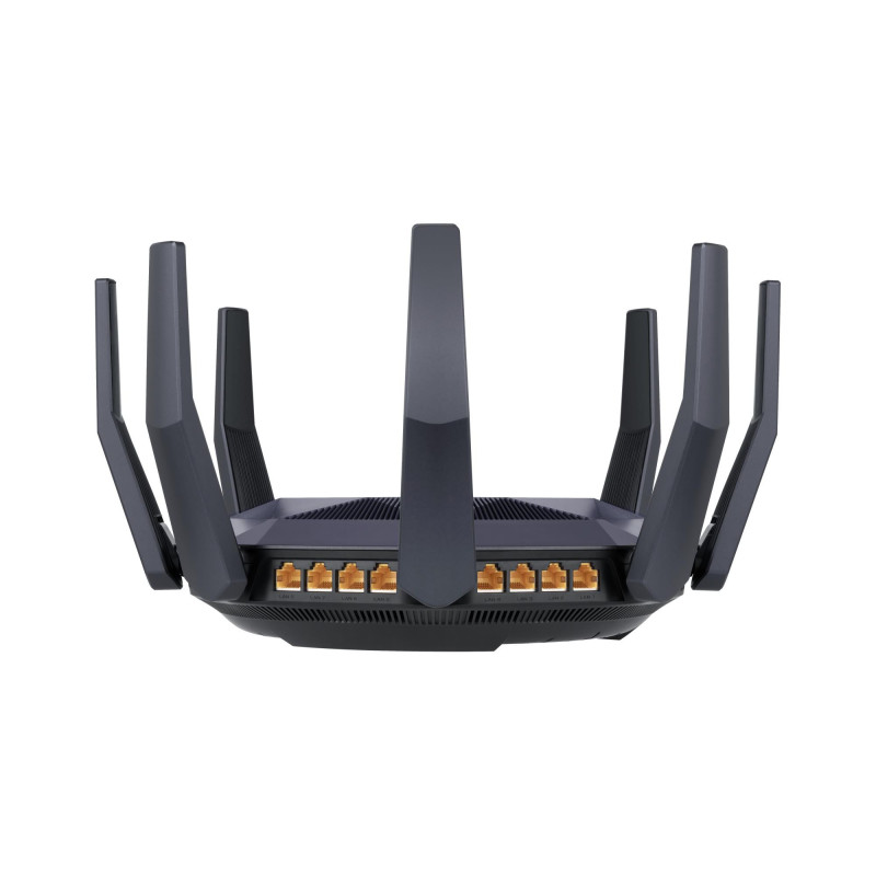RT-AX89X is a 8x8 dual-band WiFi router that provides 1024-QAM for dramatically faster wireless connections. With a total networking speed of about 6000Mbps — 1148Mbps on the 2.4GHz band and 4804Mbps on the 5GHz band — RT-AX89X is up to 2.8X faster than 802.11ac 4x4 dual-band routers.