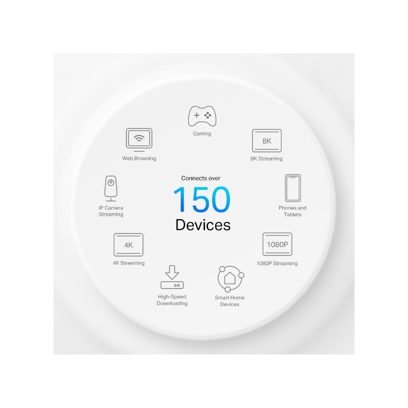 „Deco X50-5G“ suderinamas su visais kitais „Deco“ modeliais ir sudaro „Mesh“ tinklą. Bet kada galite išplėsti „Mesh“ „Wi-Fi“ aprėptį pridėdami daugiau „Deco“ įrenginių.