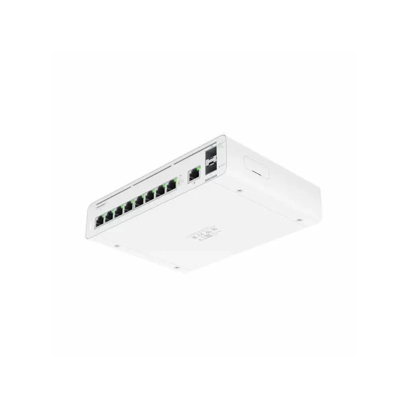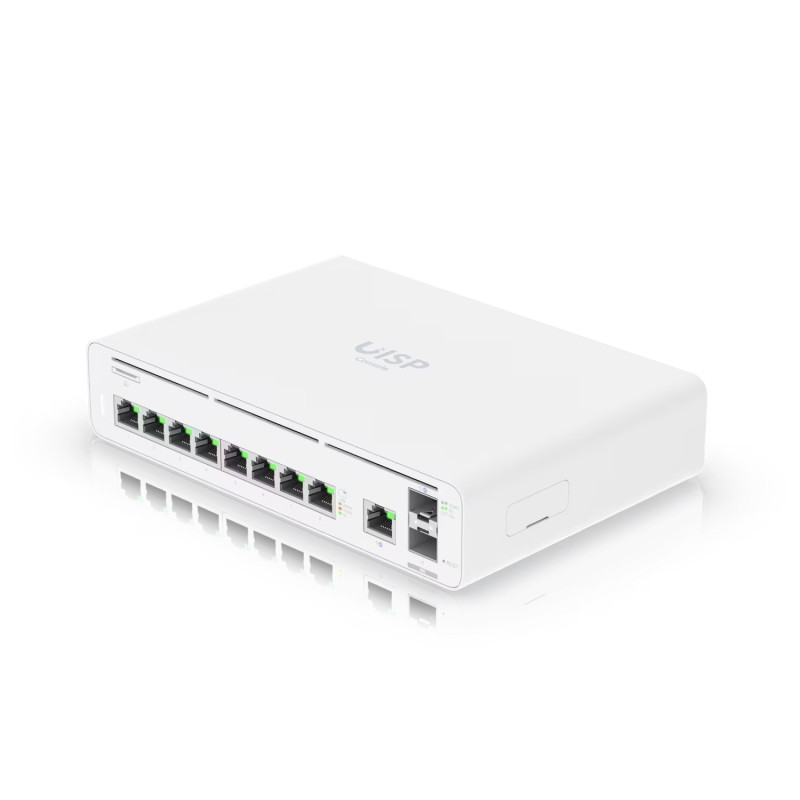 The UISP® Console is designed to support small to moderate UISP deployments with its built-in switch equipped with (8) GbE RJ45 LAN ports. The UISP Console also serves as a high-performance gateway with (1) 10G SFP+ LAN port and (2) WAN ports (10G SFP+ and GbE RJ45) that provide an ample connectivity range capable of supporting the most data-intensive deployments. The UISP Console is designed in a compact, durable metal casing and is suitable for mounting in 1U rack or on a wall (the mounting kit is included). The console is powered by an external AC/DC adapter, that is also included in packaging.