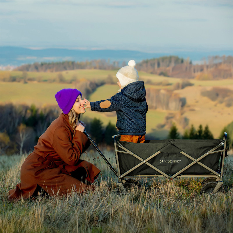 „Wozinsky WZP-100“ vežimėlis yra patikimas sprendimas įrangai, maisto produktams ar įrankiams transportuoti – puikiai tinka paplūdimiui, stovyklavimui ar sodui. Dėl milteliniu būdu dažyto plieno konstrukcijos ir iki 100 kg keliamosios galios jis gali atlaikyti sunkius krovinius bet kokiomis sąlygomis. Dvisluoksnis 600x300D Oksfordo audinys užtikrina atsparumą trinčiai ir drėgmei, o platūs ratai leidžia sklandžiai manevruoti smėliu, žole ar grindiniu. Lanksti tinklo sistema daiktų tvirtinimui ir apsauginis dangtelis yra įtraukti. Sulankstymo mechanizmas leidžia vežimėliui būti kompaktiškam ir lengvai sandėliuojamam – jis visada paruoštas naudoti.
