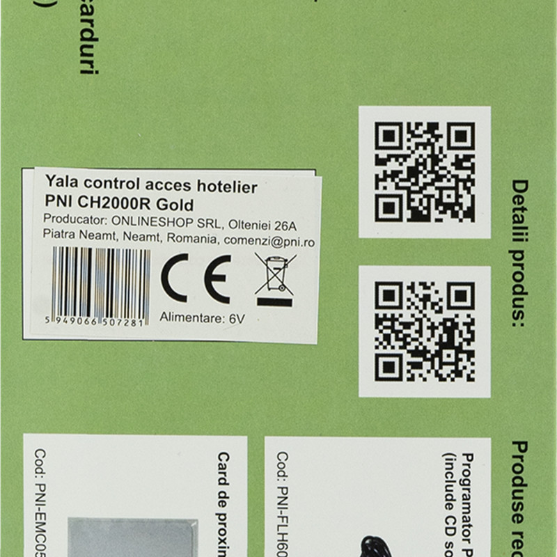 „Yala“ viešbučio prieigos kontrolė su kortelių skaitytuvu; atidaroma dešinėje pusėje. Naudojama tik pilnoje sistemoje su PNI FLH60 programuotoju, skirtu PNC EMC-05 13,56 MHz PNI artumo kortelėms, skirtoms „Yale“ viešbučių savininkams.