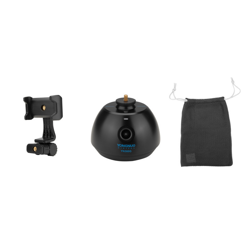 Yongnuo YN360G yra išmani automatinė galvutė , kuri nukreips jūsų išmaniojo telefono, fotoaparato ar ant jos pritvirtintos vaizdo kameros judesius taip, kad visada būtumėte kadro centre. Taip pat galite naudoti su kryptiniais mikrofonais ir lengvomis LED lemputėmis. Tiesiog uždėkite ant jo pasirinktą įrenginį, o įmontuotas judesio jutiklis užtikrins, kad jis sektų jūsų judesius 360° kampu. Stebėjimo diapazonas veikia nuo 0,5 iki 5 metrų!
