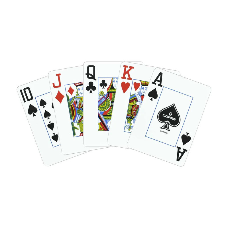 Naujosios Copag Elite Poker Sized Jumbo Index žaidimo kortos pasižymi vienu iš populiariausių stilių žaidimų kambariuose ir namuose šiandien. Kaip visada, šios kortelės yra 100% plastiko - patvarios, plaunamos ir itin ilgai tarnauja.