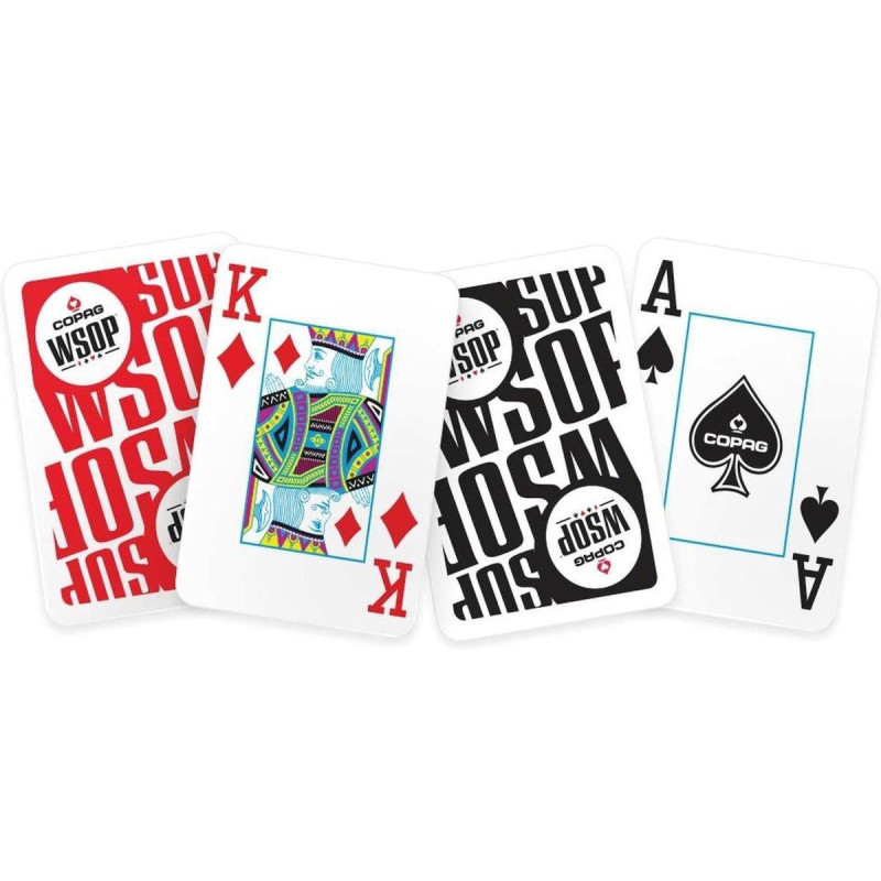 World Series of Poker turnyras Yra vienas labiausiai žinomų turnyrų pasaulyje. Jis taip pat yra žinomas kaip "pasaulio pokerio taurė". WSOP yra pokerio turnyrų serija, vykstanti Rio All Suite viešbutyje ir kazino Las Vegase, Nevadoje, JAV. Pasaulio pokerio serijos renginius remia Caesars Entertainment, Amerikos žaidimų korporacija, kuriai priklauso ir valdo daugiau nei 50 kazino ir viešbučių visame pasaulyje. Žaidimo kortos šiame COPAG World Series of Poker Double Deck Set yra oficialios WSOP žaidimo kortos ir tos pačios COPAG žaidimo kortos, kurios bus naudojamos visuose World Series of Poker renginiuose.