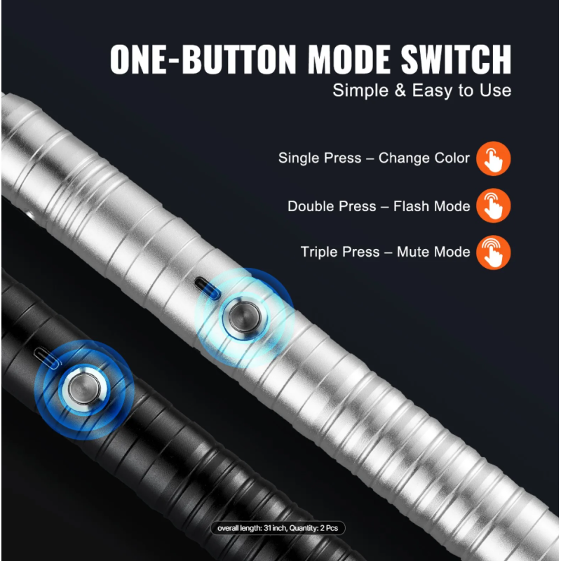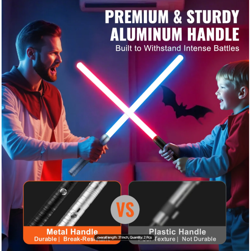 Dėl patvarios aliuminio rankenos ir tvirtų polikarbonato ašmenų šis kardas gali būti naudojamas ne tik dekoracijai, bet ir aktyviam žaidimui. Specialūs judesio jutikliai leidžia generuoti garso efektus, kurie reaguoja į kardų judesius ir smūgius.