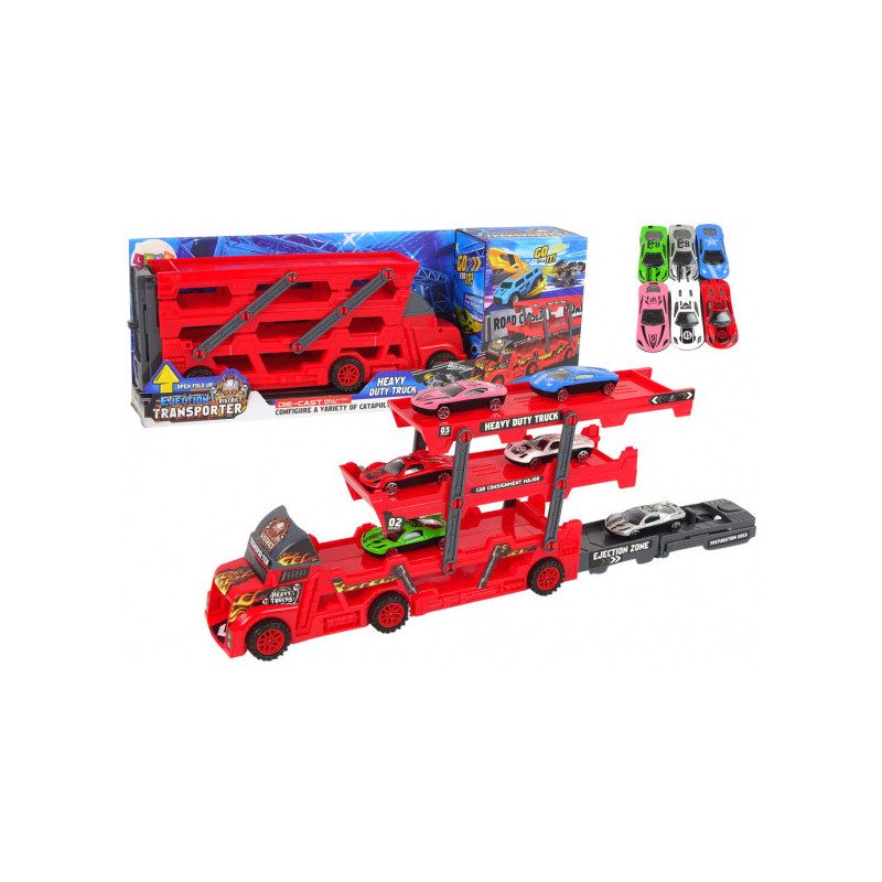 LEAN Žaislai Didelė 3 aukštų sunkvežimio priekaba Sunkiasvoris sunkvežimis su ištraukiama automobilių saugykla