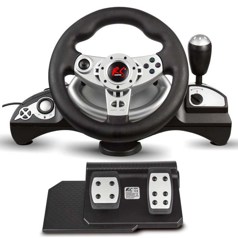 NanoRS RS700 žaidimų valdiklis juodas, sidabrinis USB vairas Analoginis / skaitmeninis Android, kompiuteris, PlayStation 4, Playstation 3, Xbox One.