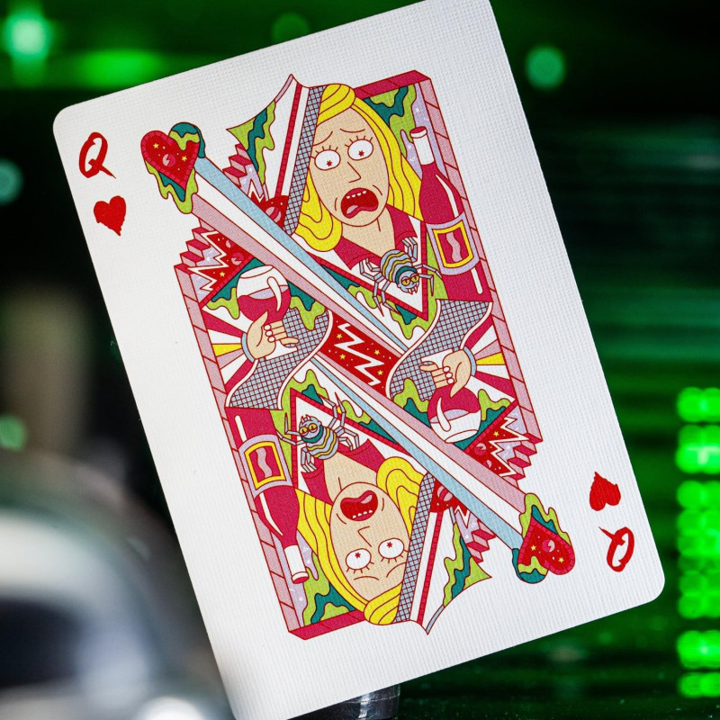 Aukščiausios kokybės žaidimo kortos, įkvėptos tarpdimensinio Rick and Morty pasaulio! Prisijunkite prie beprotiškiausio mokslininko ir jo ištikimo anūko ir leiskitės į pašėlusią kelionę po daugialypę visatą, kurioje rasite savo mėgstamus personažus ir nepamirštamas nuorodas iš serialo. Kiekvieną kaladę net užantspaudavome stiklainiu su "Pickle Ricks" lipduku!
