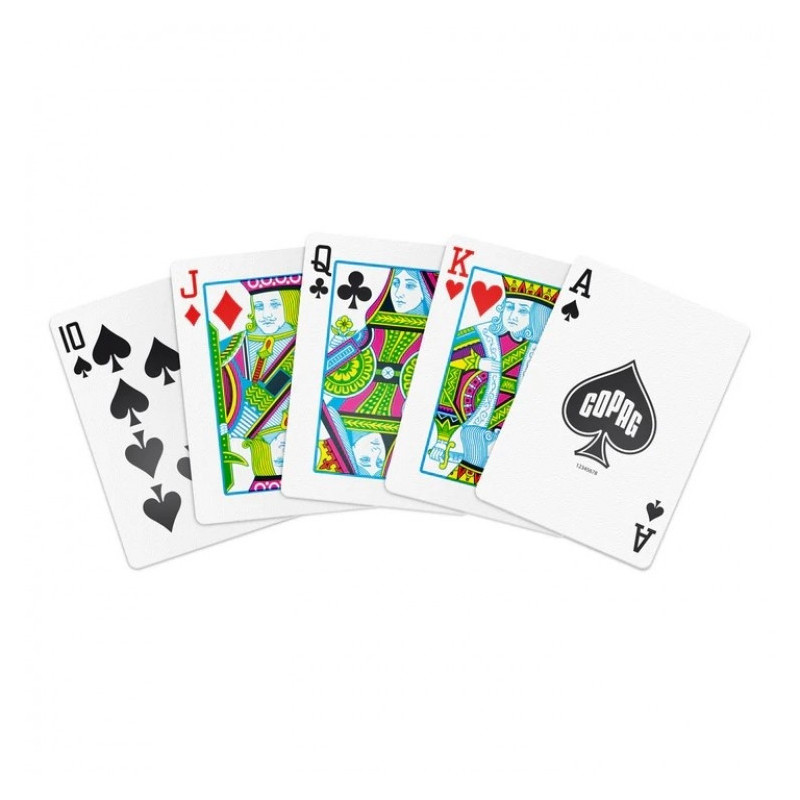Copag Elite Poker Regular Index kortų rinkinys apima dvi žaidimų kortų kalades, kiekvienoje yra 55 kortos. Pagamintos iš 100% PVC plastiko, šios kortos yra patvarios, plaunamos ir tinkamos įvairiems kortų žaidimams, tokiems kaip pokeris.
