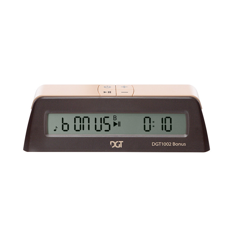 DGT 1002 laikmatis turi lengvai skaitomą ekraną ir paprastą programavimą su viršutiniais mygtukais. Jame yra atgalinis laikmatis ir galimybė nustatyti fiksuotą papildomą laiką kiekvienam žaidėjui prieš jų ėjimą.