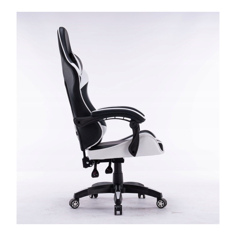 Sukamoji žaidimų kėdė su paminkštinta sėdyne ir atlošu, reguliuojamu aukščiu bei kampu, užtikrina komfortą ir pritaikomumą. Metalinis pagrindas su 5 ratais garantuoja stabilumą ir manevringumą, o svorio talpa siekia 100 kg.