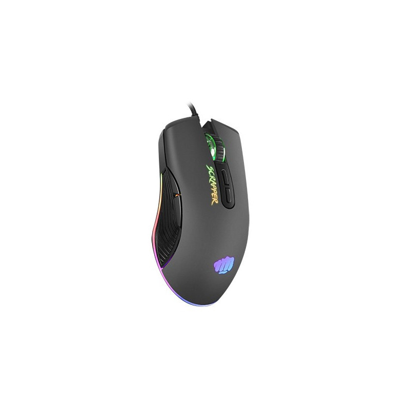 The FURY Scrapper mouse features an ambidextrous design, a 6400 DPI optical sensor, and 5 programmable buttons. It has a 1.6m cable, multi-color lighting, and is compatible with a variety of operating systems, including Windows and Linux.