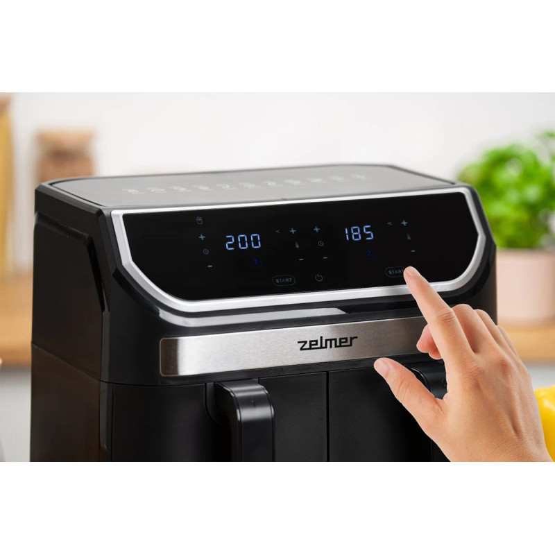 1700 W neriebi gruzdintuvė, kurios talpa 9 l, su 360º greitos oro cirkuliacijos technologija.